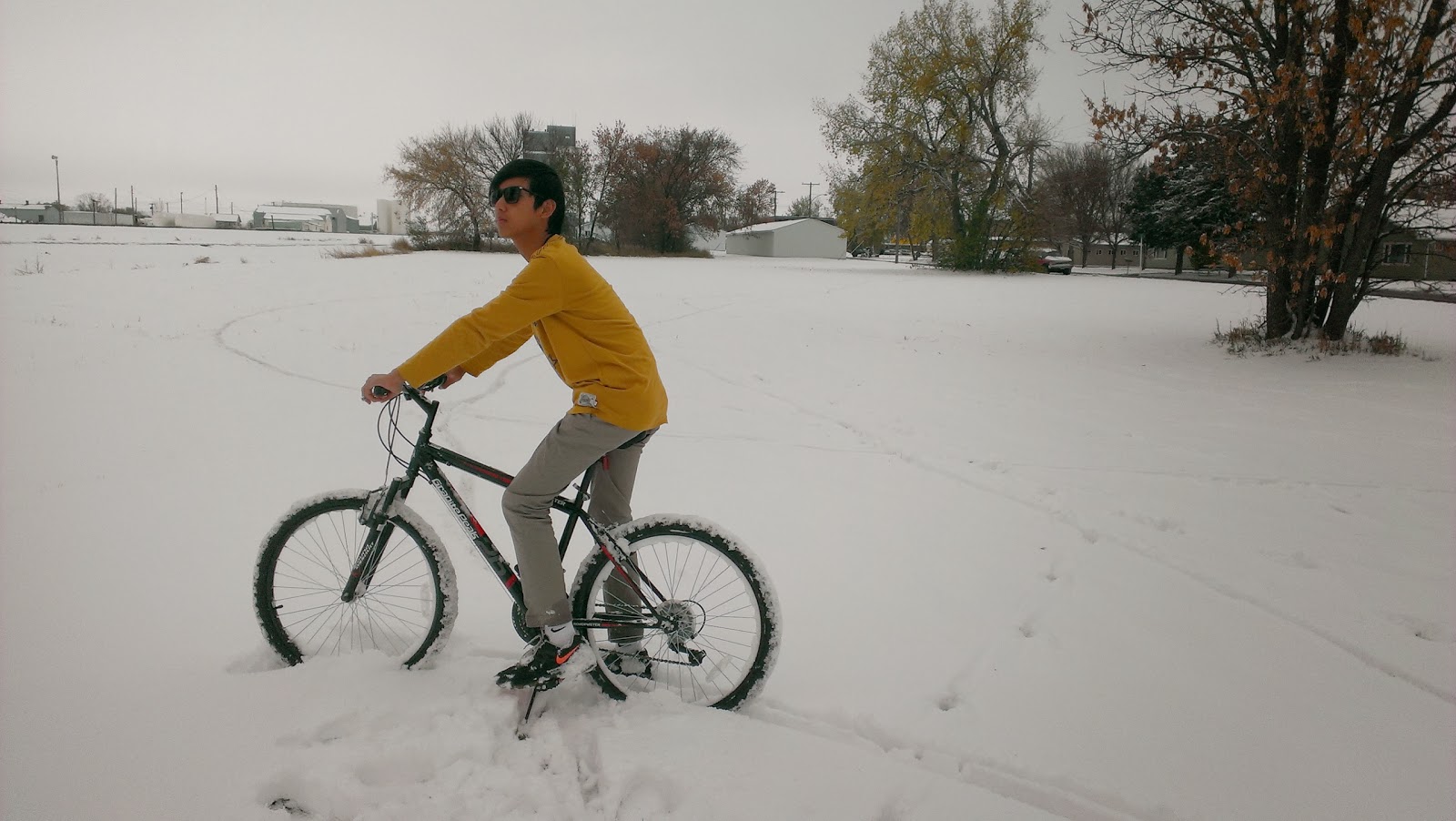 The first thing JJ and I did when we arrived home was wearing our coat and gloves, and ran out. We couldn't wait to play in the snow! The snow is so soft and bright, it is very beautiful. We play with each other, but since JJ didn't have gloves, I always attack him! Haha It was really fun. We also shoveled the snow, we made a clean road in front of the house so we can walk through. And I tried to ride the bike in the snow, it was kinda hard because the snow was up to about 3 inches deep.